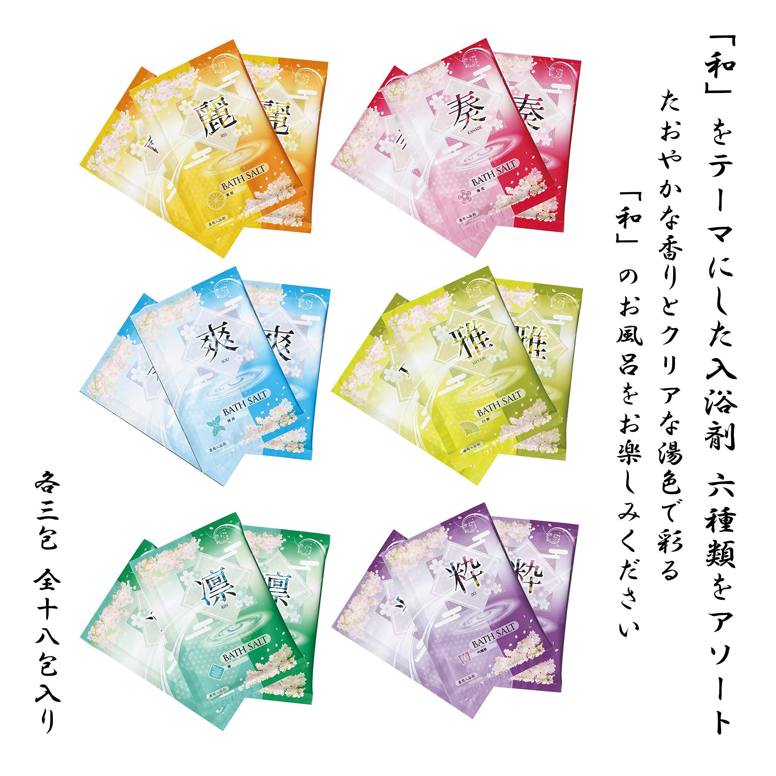 【Product Details】Medicated Bath Additive: Powder Type, Individually Packaged [Net Weight]25g × 18 packets (6 varieties: Rei, Kanade, Sō, Miyabi, Rin, Iki × 3 packets each) [Country of Origin]Japan ※Quasi-drug